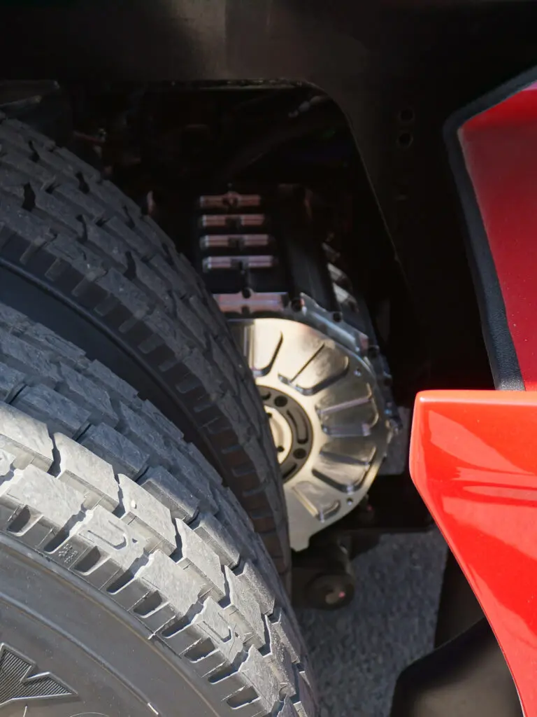 De e-axles zijn net zichtbaar achter de achterwielen van de Two.