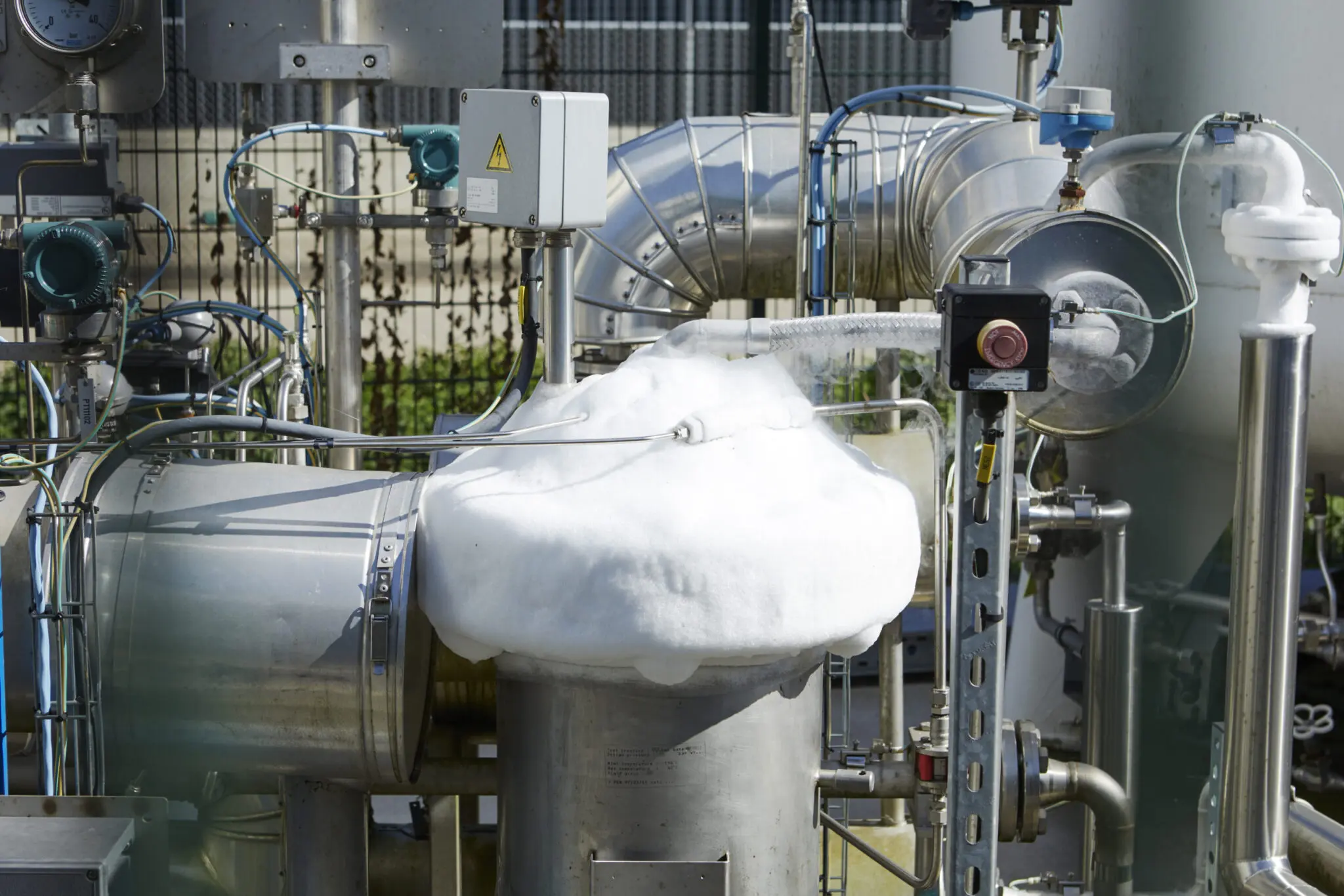 LNG is ijs- en ijskoud als het de tank ingaat. Zie de ijsvorming op de tankinstallatie.