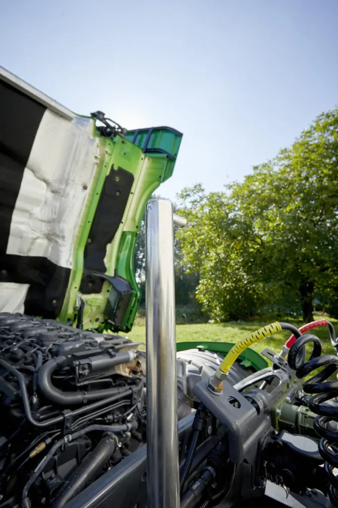 Met de cabine gekanteld wordt ook het methaan uitlaatpijpje zichtbaar.