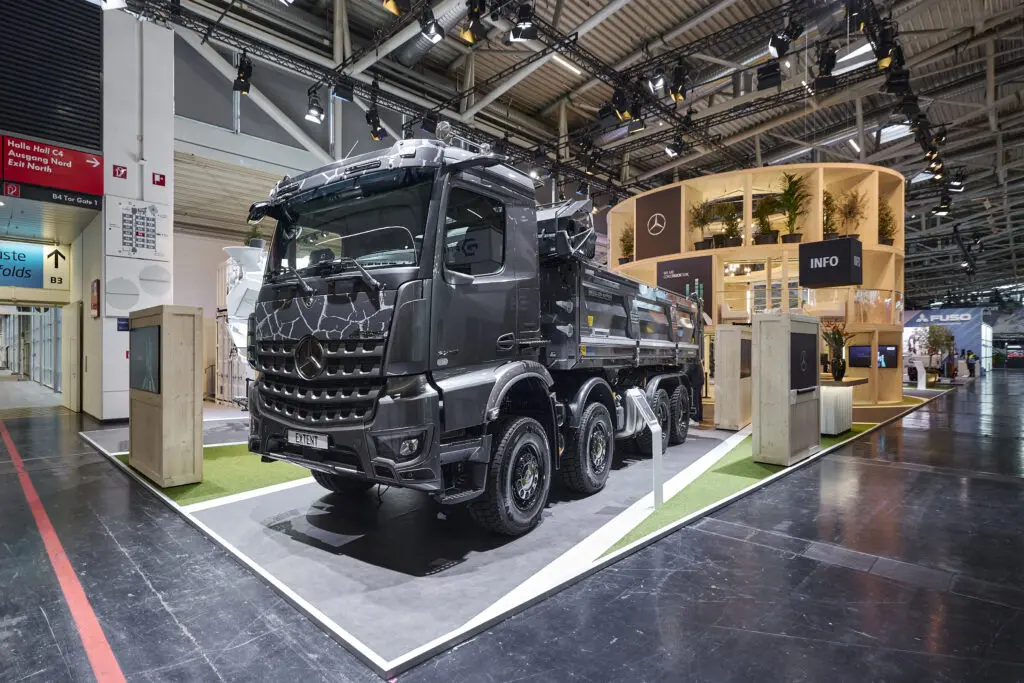 Naast de wereldpremière van de eArocs 400 was er op de stand van Mercedes-Benz Trucks ook aandacht voor een exclusieve special edition: de Mercedes-Benz Arocs Extent. Dit gelimiteerde model, waarvan slechts 100 exemplaren worden geproduceerd, is ontworpen voor wie robuustheid en stijl op de bouwplaats wil combineren.