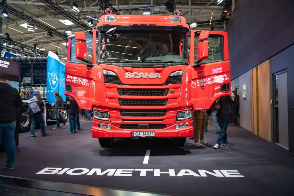 Verder toonde Scania ook een voertuig op biomethanol, waarmee het merk zijn veelzijdige aanpak benadrukt.