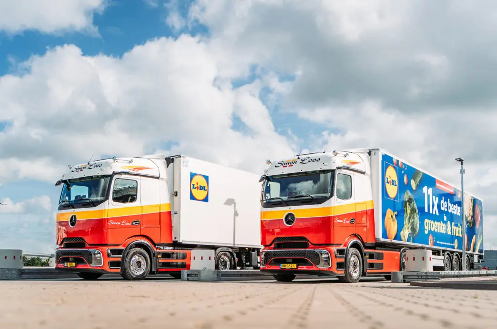 De eerste twee Mercedes-Benz eActros 600-trucks van Simon Loos zijn in gebruik bij Lidl in Almere. Met deze nieuwe elektrische trucks zetten Simon Loos en Lidl samen een stevige stap richting emissievrije distributie.