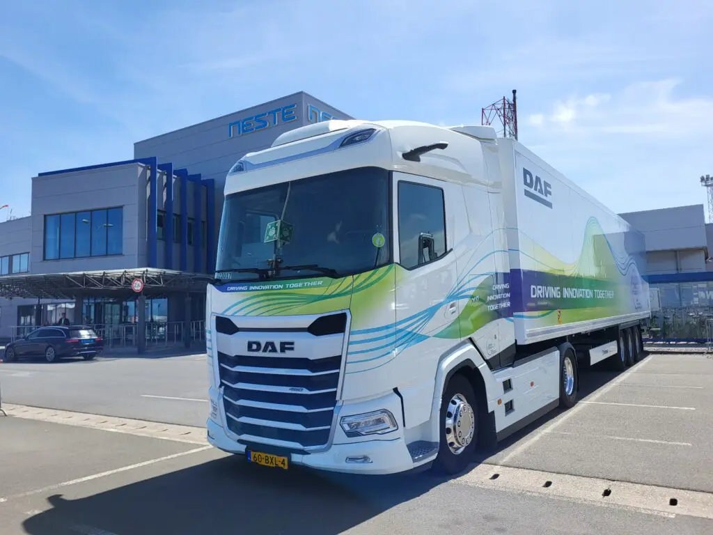 Wat wel duidelijk is, zijn de klimaatdoelstellingen van de Europese Commissie. In 2030 moeten CO2-emissies 55 procent lager liggen dan die van 1990. In 2050 moet mobiliteit CO2-neutraal zijn. “Er wordt nu volop ingezet op elektrificatie, maar die transitie gaat langzamer dan verwacht”, geeft Jeroen van den Oetelaar, Chief Engineer Vehicle Development bij DAF Trucks toe. “DAF Trucks presenteerde haar eerste elektrische trucks in 2018 en breidt haar gamma op dit gebied uit, maar elektrische trucks zijn nog voor lang niet alle vervoerstaken inzetbaar. De verbrandingsmotor blijft voorlopig nog wel een belangrijke rol spelen. HVO100 kan een CO2-reductie opleveren van 90 procent. Het is voor DAF Trucks een duidelijke gateway om ook na 2030 CO2-reductie te blijven realiseren.” DAF Trucks is altijd al voorvechter van het aanhouden van de verbrandingsmotor en de toepassing van HVO100 geweest, maar wordt daar nu min of meer ook toe gedwongen. “De Europese wetgeving houdt truckfabrikanten verantwoordelijk voor het behalen van CO2-doelen. Worden die doelen niet behaald, dan volgen er forse boetes. En dan bedoel ik echt fors. Een afwijking van 1 procent kan een boete van 150 miljoen euro opleveren”, aldus Van den Oetelaar. “Dat willen we natuurlijk voorkomen en daarom zijn alle dieselmotoren van onze trucks geschikt voor het gebruik van HVO100.” Om dat te laten zien rijdt DAF Trucks mee met een XG op HVO100.