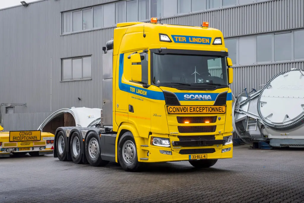 Windmolentransportspecialist Ter Linden Transport uit Doetinchem is het 50-jarig jubileumjaar van de Scania V8-motor goed begonnen. Het bedrijf nam twee Scania V8 8×4 zwaar transporttrekkers in gebruik. Een met 730 pk en een ‘lichtere’ 580 pk variant. Beide voertuigen zijn voorzien van de hoogste S-cabine in full spec uitvoering en volledig toegesneden op het transport van onderdelen van grote windturbines door heel Europa. Het zijn de eerste Scania’s sinds lange tijd binnen het bedrijf.