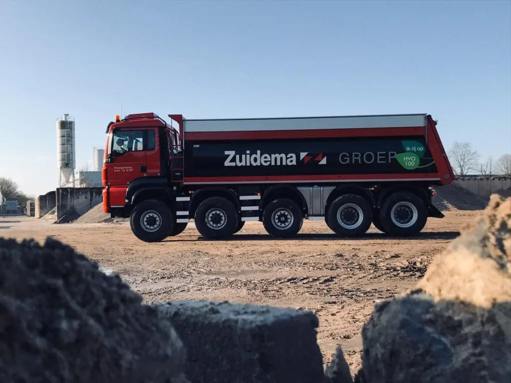 Dat vindt ook Harrold J. Dusseljee van Zuidema Groep. Een deel van de nieuwe vrachtauto’s van het bedrijf uit Hoogeveen rijdt op HVO: “We zijn een mkb-bedrijf. Dan ben je toch wat voorzichtig met flinke investeringen in nieuwe technieken, zoals een rupskraan op waterstof. Wij zijn daarin niet leidend, maar volgend. Als je toch op korte termijn wat wil, is HVO een mooie oplossing”, legt Dusseljee uit. Zuidema Groep is gecertificeerd op het hoogste niveau van de CO2-Prestatieladder en vindt het belangrijk om waar mogelijk te verduurzamen. “Ruim 90 procent van onze uitstoot zit in brandstoffen. Daarom zijn we op zoek gegaan naar duurzame alternatieven. Zo kwam HVO langs. Door met een paar auto’s op HVO te rijden, brengen we onze uitstoot met tonnen naar beneden en komen we op een reductie van zo’n 10 procent uit.”