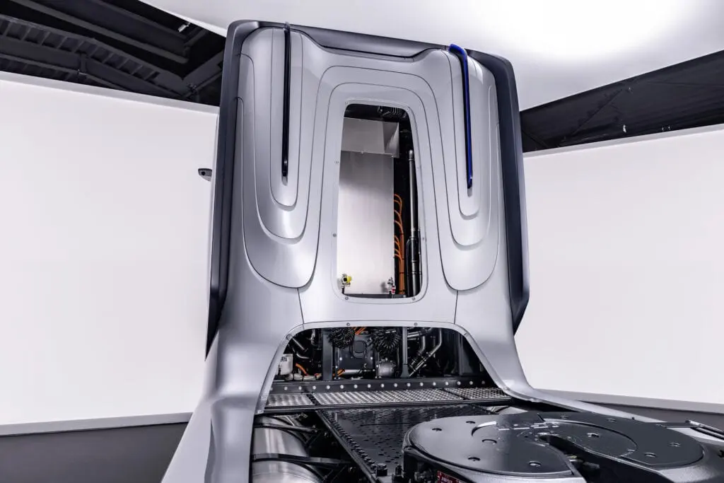 Met de eActros LongHaul biedt Mercedes-Benz nu een 4×2 Actros trekker voor de langere afstand, goed voor 500 km. Wat is dan het omslagpunt wanneer de vervoerder moet kiezen voor een FCEV-Actros in plaats van een BEV-Actros? Daar was Daimler Trucks CEO Martin Daum duidelijk over. “Hoe lichter de lading en hoe korter de afstand, dan kies je voor BEV. Wordt de lading zwaarder en de afstand langer, dan kies je voor waterstof.” De voor de lange afstand beperkte actieradius van 500 km van de eActros LongHaul wordt door Mercedes-Benz netjes gemarkeerd door te stellen dat chauffeurs na 4,5 uur rijden toch moeten rusten en dat ze dan mooi de eActros LongHaul aan de laadpaal kunnen leggen. Of er dan een laadpaal in de buurt is van de truckparking is gezien de huidige stand van zaken langs de internationale snelwegen nog maar zeer de vraag. Opladen bij voorzieningen als distributiecentra is ook een optie, merkt Mercedes terecht op.