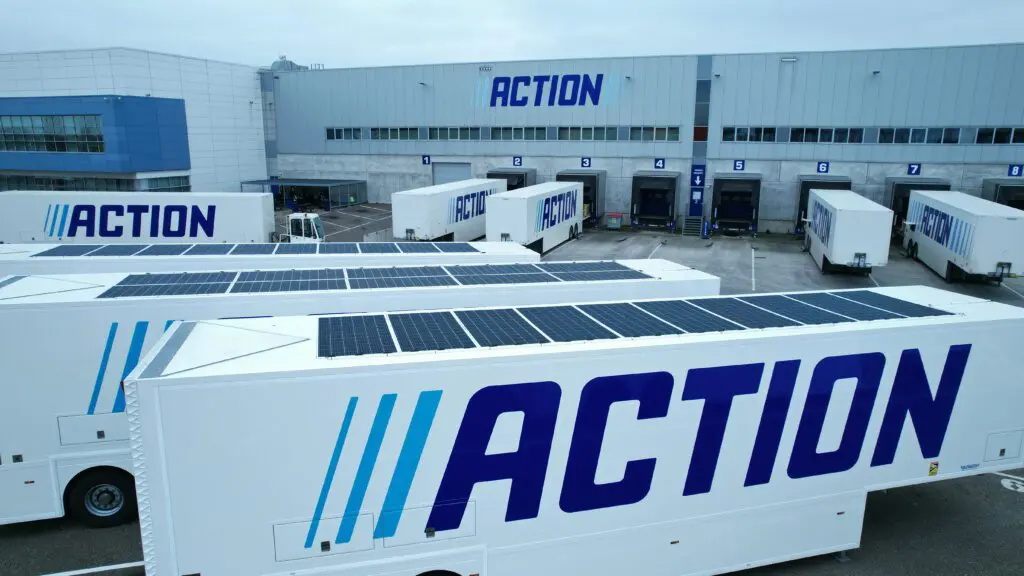Naast de inzet van e-trucks is Action ook een pilot gestart met zogenoemde SolarOnTop-zonnepanelen op drie dubbeldeks-trailers. Die besparen tot 4 ton CO2-uitstoot per trailer in combinatie met reguliere trucks met dieselmotor.