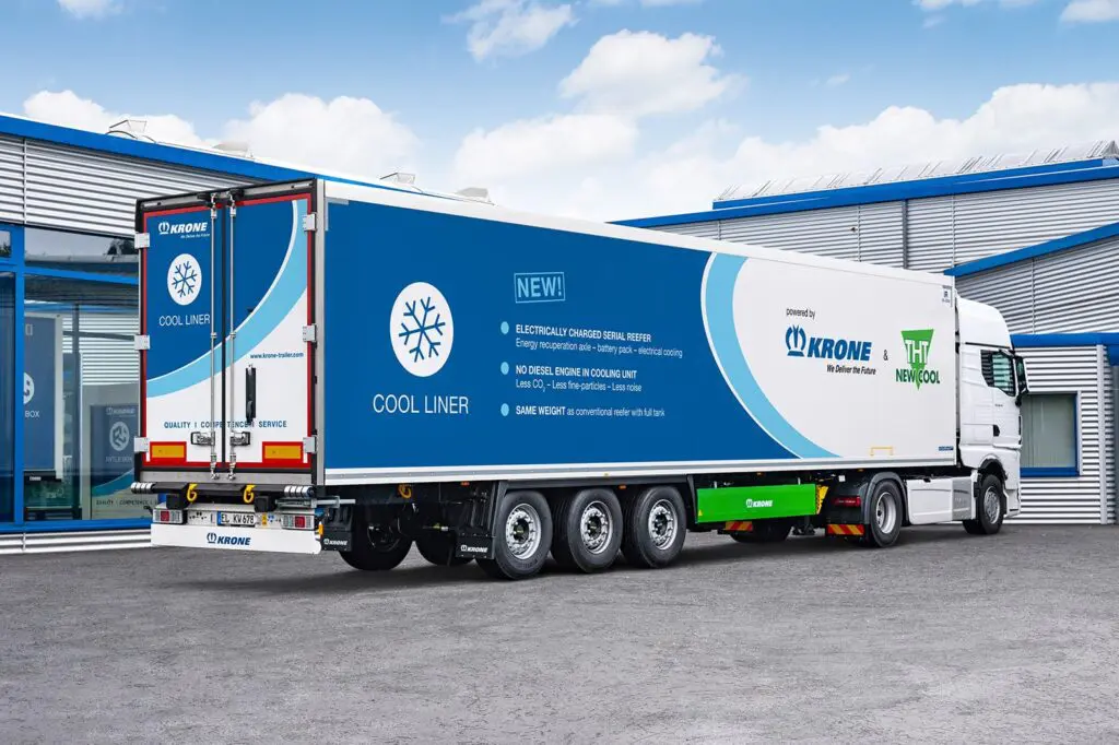 De Cool Liners die zijn geleverd aan Happy Cargo zijn overigens niet voorzien van een elektrische koelmotor en regeneratie-as. Krone heeft de afgelopen jaren wel samen met THT New Cool een concepttrailer van dit type ontwikkeld.