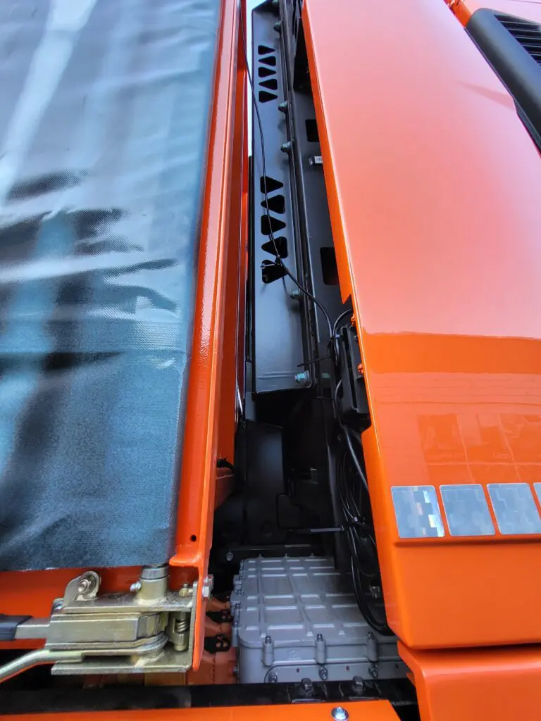 De schuifzeilenopbouw is bijzonder, want de Hyundai’s die in andere landen reden hadden veelal een vaste opbouw. “Een schuifzeilenopbouw is veel minde rigide bij een ongeval”, zegt directeur Bert Post van De Poel Carrosseriebouw. “De waterstoftanks moeten bij een ongeval goed beschermd zijn en een impact van 9G kunnen weerstaan. Daarom hebben we een speciale constructie gebouwd die de schuifzeilenopbouw direct verbindt met de opbouw van de tanks. Daarmee is de veiligheid gegarandeerd”, laat Post zien. De truck is inmiddels goedgekeurd door de RDW.