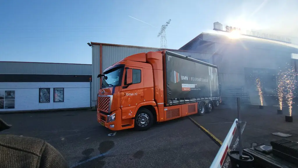 BMN, de grootste bouwmaterialenhandel van Nederland, gaat als eerste in Nederland rijden met de Hyundai Xcient Fuelcell waterstoftruck. De feestelijke onthulling en overhandiging vonden donderdagmiddag plaats bij BMN in Groningen.