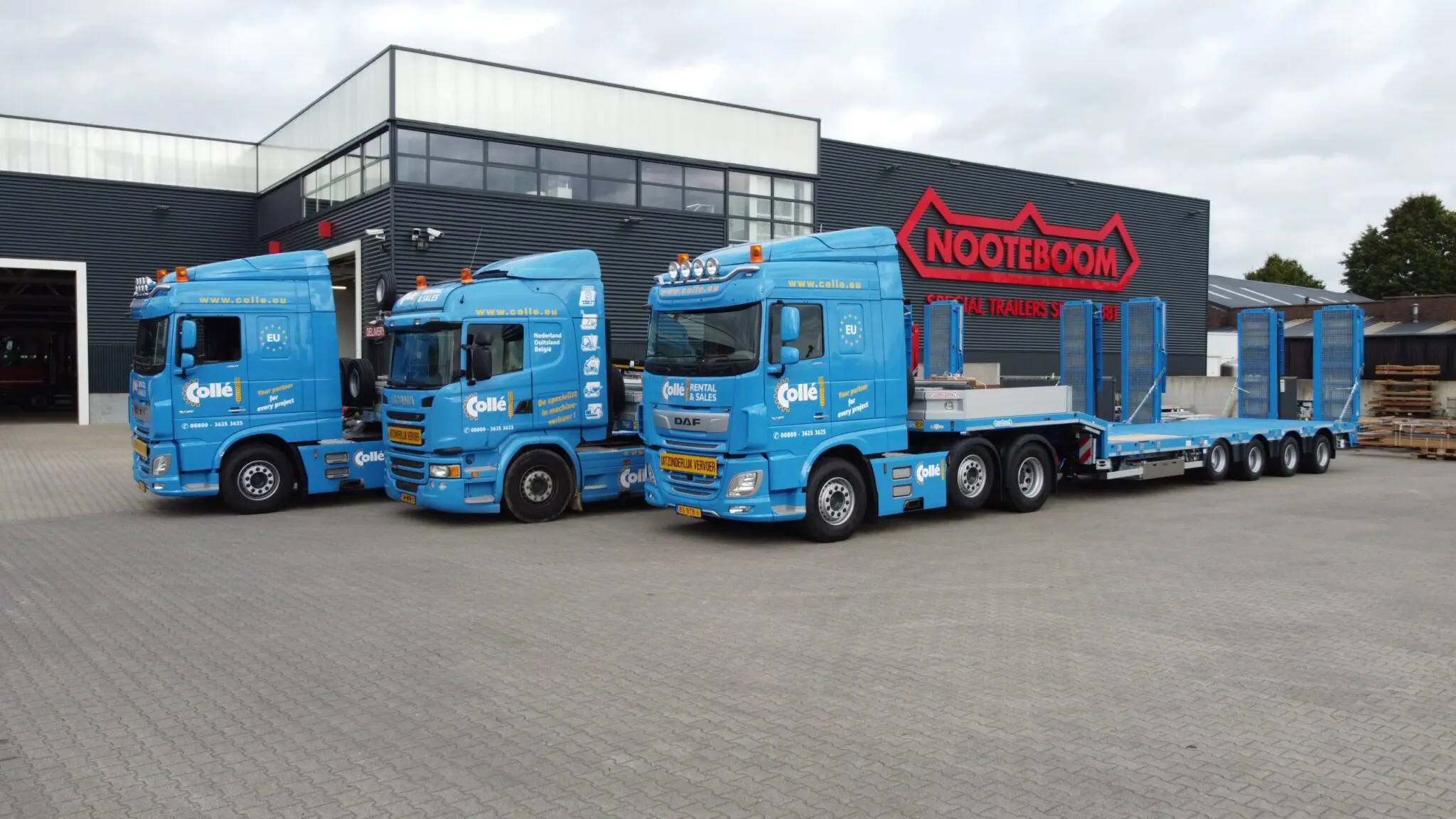 Collé Rental & Sales heeft een mega-order geplaatst bij Nooteboom Trailers. De levering omvat 26 stuks 3- en 4-assige semidiepladers met zelfsturende naloopassen uit het Nooteboom SMART programma. Via ingehuurde charters heeft Collé in de afgelopen jaren zeer positieve feedback gehad over de Nooteboom semidiepladers, waardoor Collé heeft besloten deze mega order aan Nooteboom te gunnen.