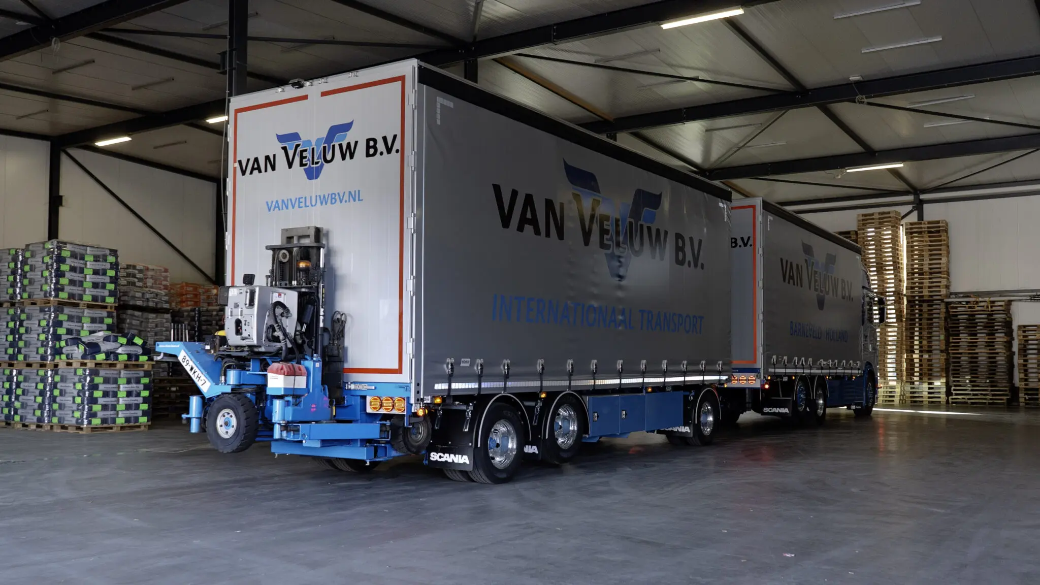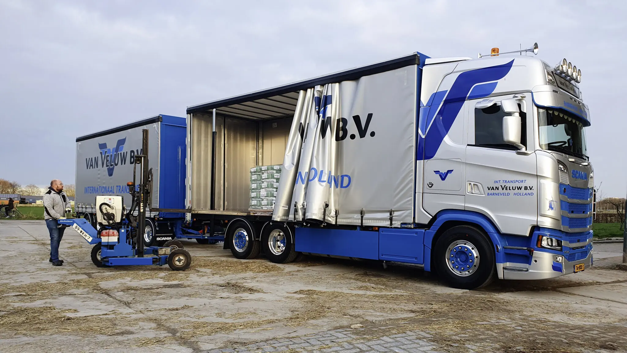 Er wordt door Van Veluw veel gelost op krappe boerenadressen, daarvoor wordt een kleine trailer ingezet, maar door de hoeveelheid kan deze het niet meer alleen aan. Om toch flexibel te zijn en toch grote hoeveelheden te kunnen meenemen, is een combinatie aangeschaft. Daarmee kan ook gemakkelijker terugvracht worden geregeld.