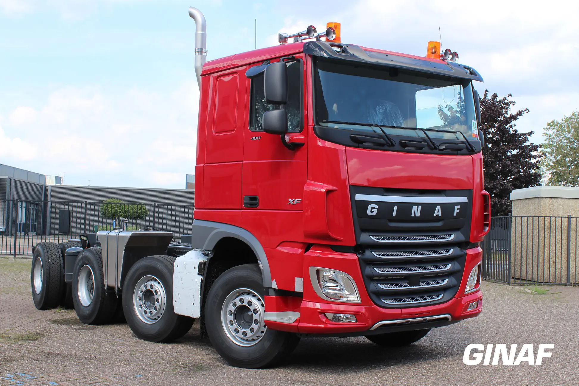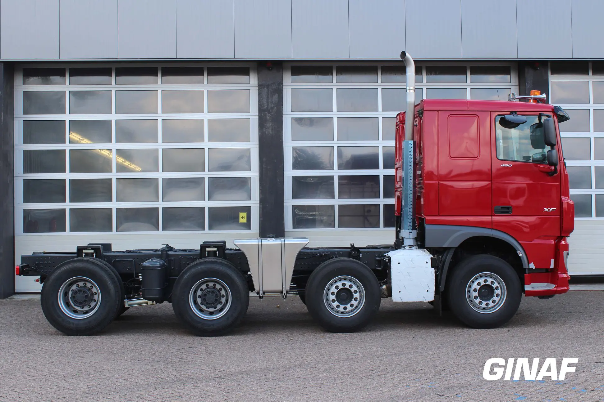 De 8×4 is net uit productie is en is besteld door Bakker Bedrijfswagens Ederveen voor Te Loo uit Eefde. De wielbasis bedraagt slechts 5700 mm. Deze GINAF zal worden opgebouwd met een achterover kipper door Vossebelt kippers en containers.