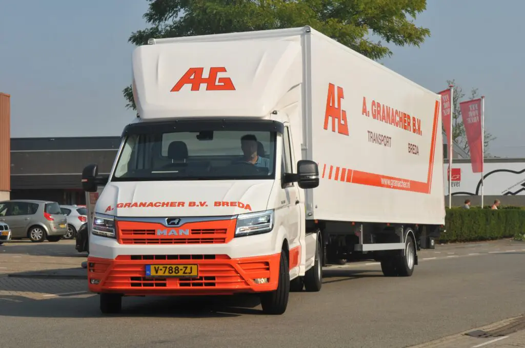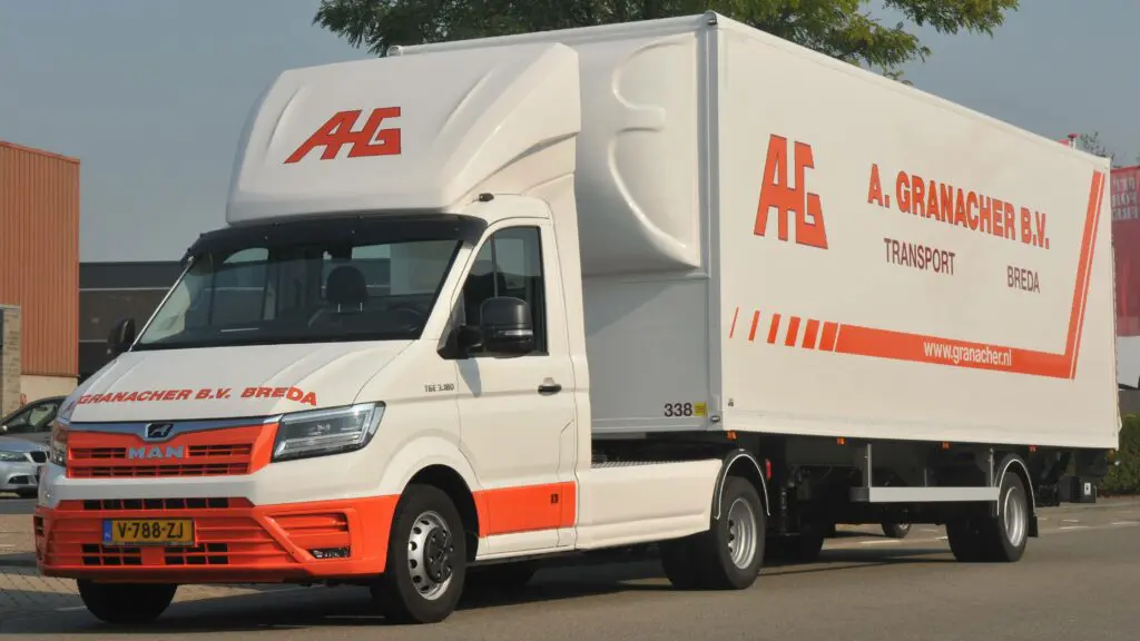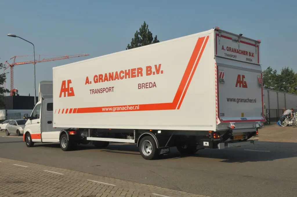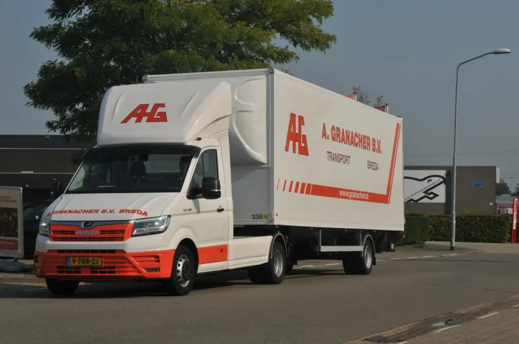 In het wagenpark van zijn bedrijf is MAN is duidelijk vertegenwoordigd “We wilden met deze TGE-combi een bakwagen vervangen. Getuige de te vervoeren gewichten zou dat precies uit moeten kunnen en hoeven we daarvoor niet per se een gediplomeerd chauffeur in te zetten, maar een door onszelf opgeleide chauffeur die overweg kan met zo’n trailer.” Granacher vertelt ook waarom hij bij MAN terecht kwam. “De nieuwe TGE lijkt gemaakt voor dit soort transporttaken. Naar het samenstellen van de combinatie heb ik weinig omkijken gehad. Onze dealer, Thieu van Dorst Bedrijfswagens, wist precies wat er gebeuren moest. Hij heeft ons zoals dat zo mooi heet ‘ontzorgd’.” Granacher verwacht dat de nieuwe TGE-combi lagere kosten met zich mee zal brengen, ook in verbruik en onderhoud. “Een ander voordeel is de wendbaarheid, wat ook weer tal van voordelen in de praktijk met zich mee zal brengen”, verwacht Granacher.