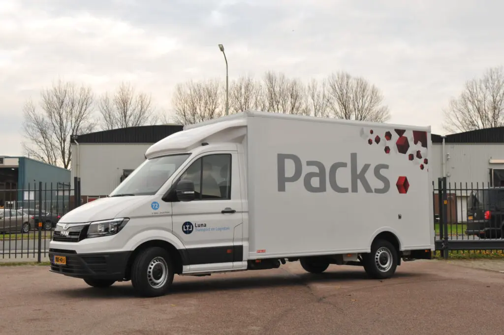 De opbouw van de nieuwe MAN TGE’s van Luna Koeriers laten meerdere namen zien. “We rijden voor Packs, dat is een misschien wat minder grote pakketdienst en we rijden voor supermarktketen Deen, die hier vlakbij een groot distributiecentrum heeft staan. De ladingen van Deen zijn gekoeld en worden in de zogeheten Qubic boxen meegenomen en op een innovatieve manier op de bodem van de laadvloer gezekerd. Een combinatie van werkzaamheden die ertoe leidt dat we meerdere chauffeurs op deze voertuigen inzetten.” Luna Transport en Logistiek heeft veertig bestelauto’s en daarvoor worden zestig chauffeurs ingezet. “Het werk bestaat voor de helft uit koerierswerk en voor de andere helft uit pakketwerk.” De MAN TGE’s zullen intensief ingezet gaan worden. Een derde TGE is inmiddels alweer besteld.
