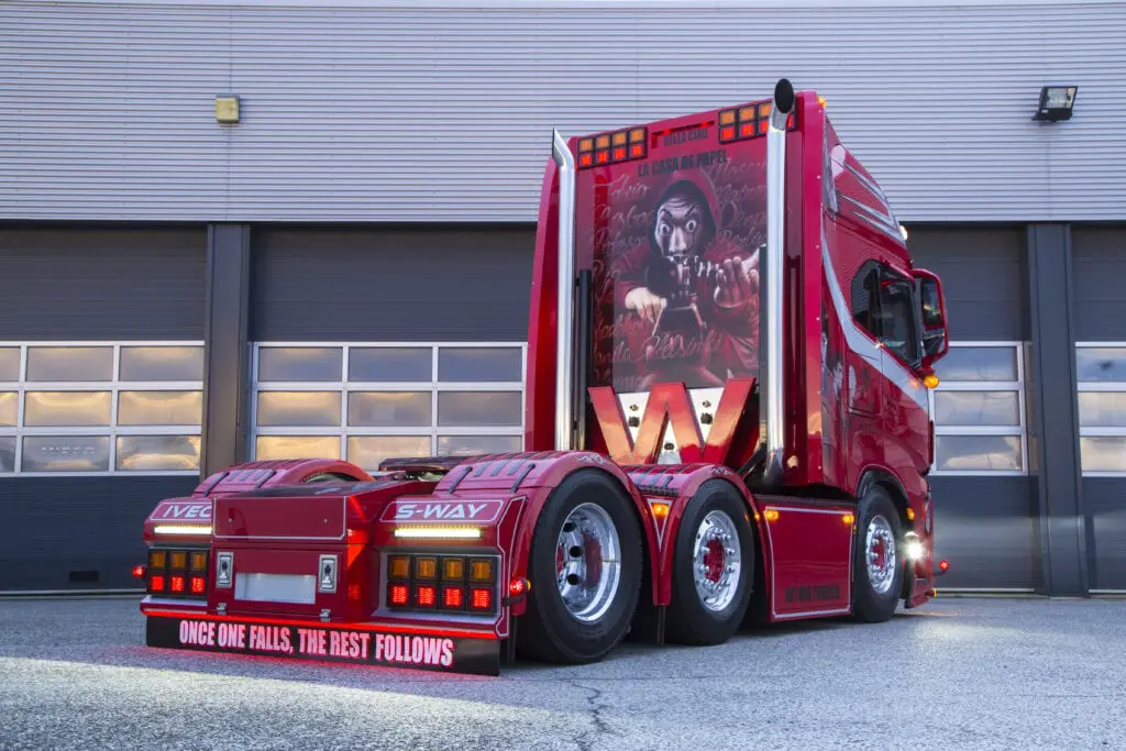 Weeda Transport uit Klundert staat bekend om zijn opvallende trucks. De nieuwste is geïnspireerd op de Netflix-hitserie La Casa de Papel en daarom wordt de Iveco S-Way al ‘La Casa de Weeda’ genoemd.