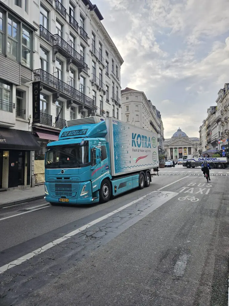Kotra Logistics, specialist in vervoer, opslag en handling van verse en diepgevroren levensmiddelen, beschikt over ruim 220 trekkende en 370 getrokken eenheden en is actief in heel Europa. “Op veel internationale routes is elektrisch rijden nog lastig”, zegt Van Nieuwenhoven. “Maar op regionale ritten, zoals die naar Brussel, kan het al prima. Dit is voor ons een mooie stap om ervaring op te doen en dat is precies wat we nu willen.”