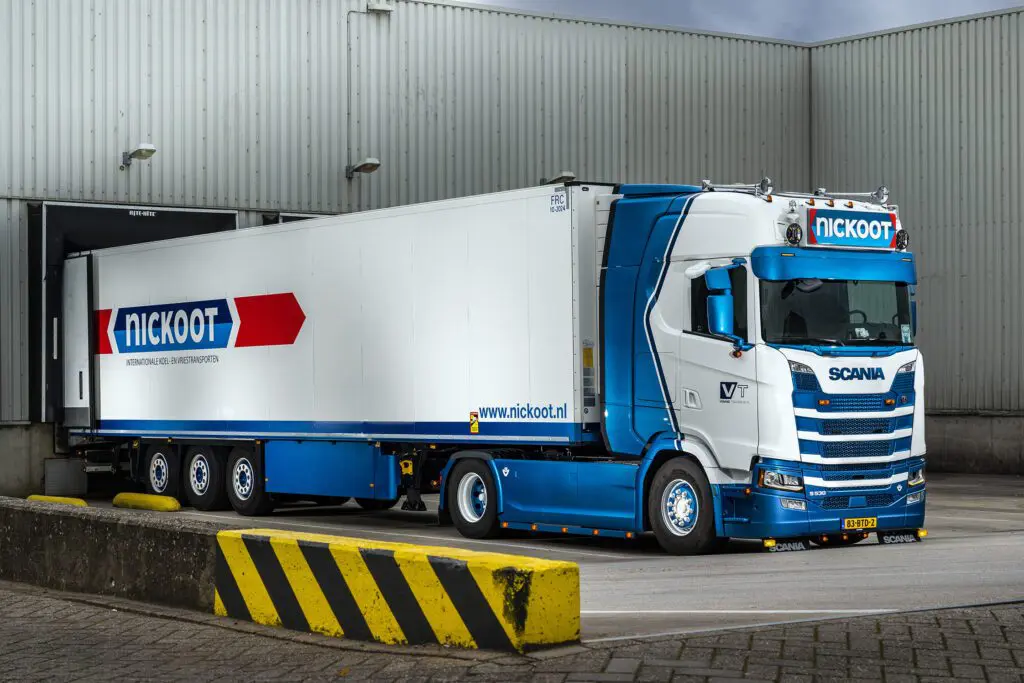 Nickoot uit Dordrecht, groot in het transport van onder meer hangend vlees op Frankrijk en Spanje, nam recent de 100ste truck sinds de oprichting van het bedrijf in gebruik. Het werd een Scania S530 als 4×2 in de hoogste cabine uitvoering. En uiteraard met een V8 motor.