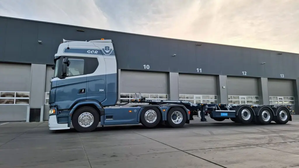 Het bedrijf koos voor een tweetal D-Tec Flexitrailers HD en een Combitrailer CT 521 S. De Combitrailer is speciaal ontworpen voor zware ladingen en biedt de mogelijkheid om containers zowel op het voorstuk als op het achterstuk te vervoeren zonder gevaar op overbelasting van de trekas.