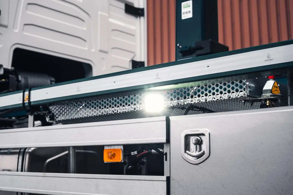 Een aanvullend veiligheidsaspect is de toepassing van de Edge Series werklamp in de opstap, die is geschakeld aan het openen van de deur. Deze oplossing vergroot het zicht op het moment dat de chauffeur het voertuig betreedt of verlaat en vermindert daarmee het risico op vallen of wegglijden. Zeker in de donkere wintermaanden is dit een welkome feature om het werkgemak voor de PreZero medewerkers te verhogen.