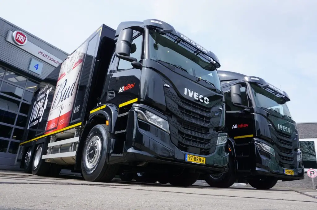 Bierbrouwerij AB inBev heeft onlangs twee nieuwe Iveco’s  S-Way NP in gebruik genomen. De S-Way’s NP zijn voorzien van zowel CNG- als LNG-tanks. Met deze trucks wil AB InBev een hoge actieradius combineren met het verkleinen van de CO₂-footprint. De 6×2 bakwagens bevatten een 12.000 liter tankinstallatie en zijn bedoeld voor de levering van kelderbier aan de horeca.