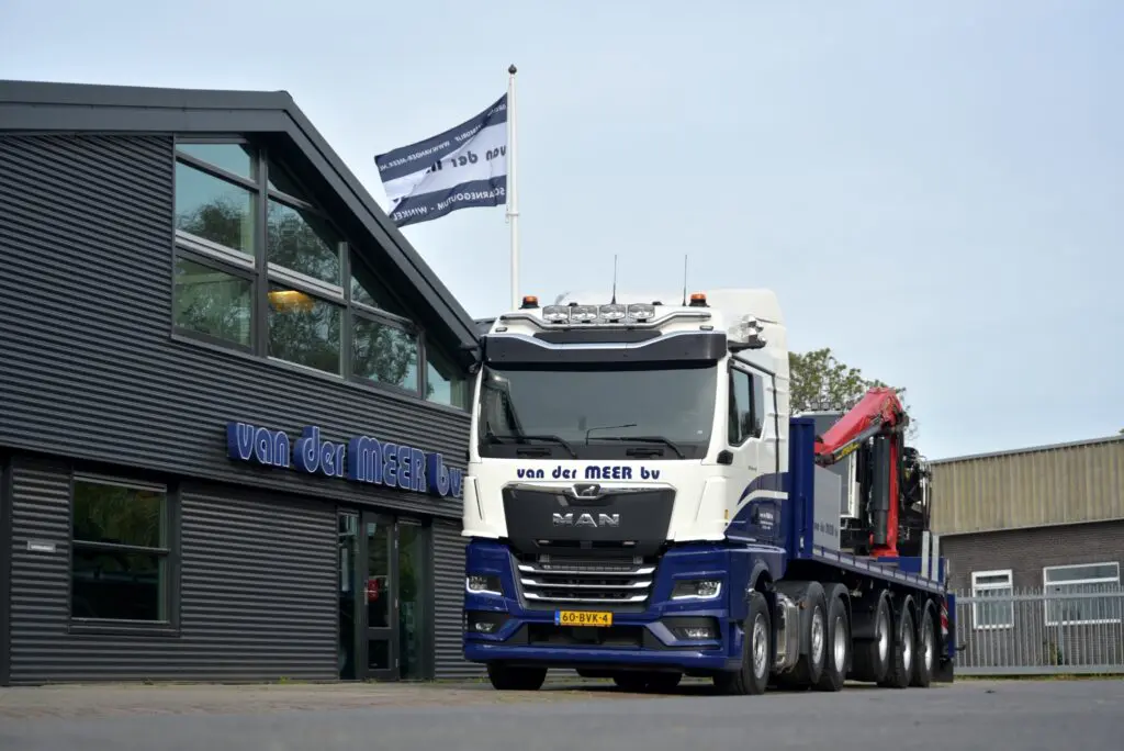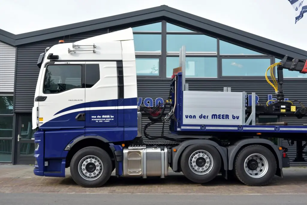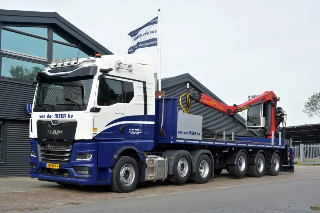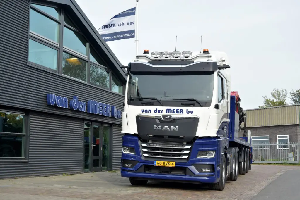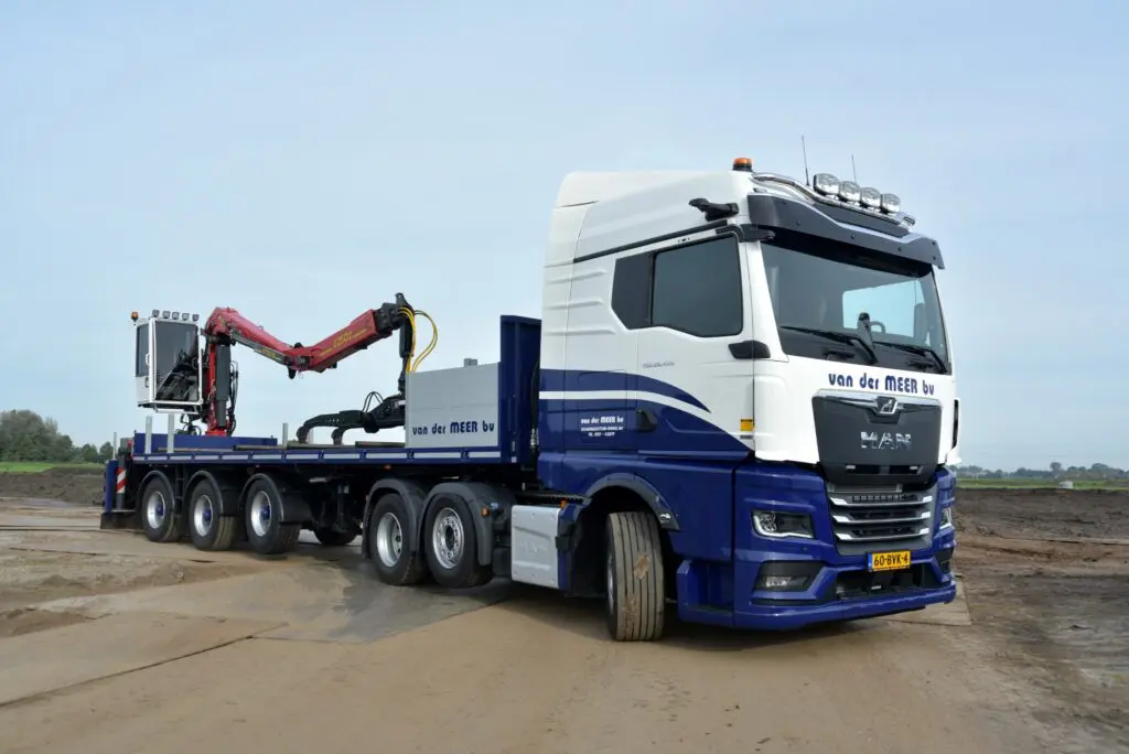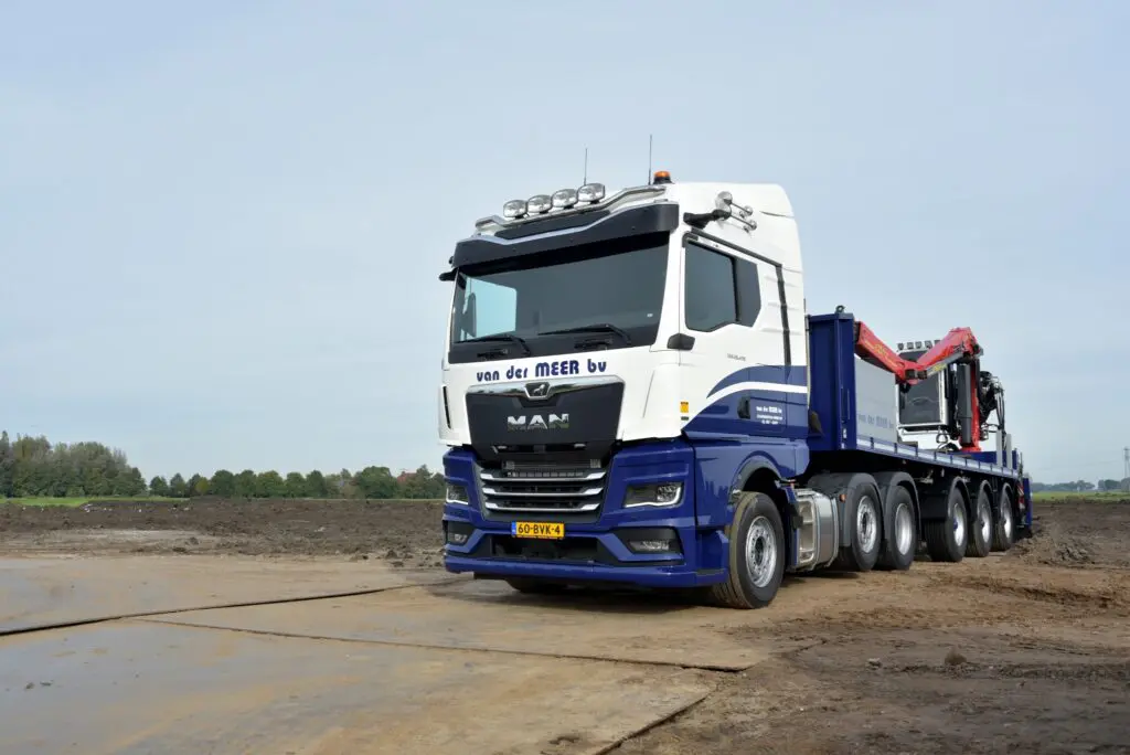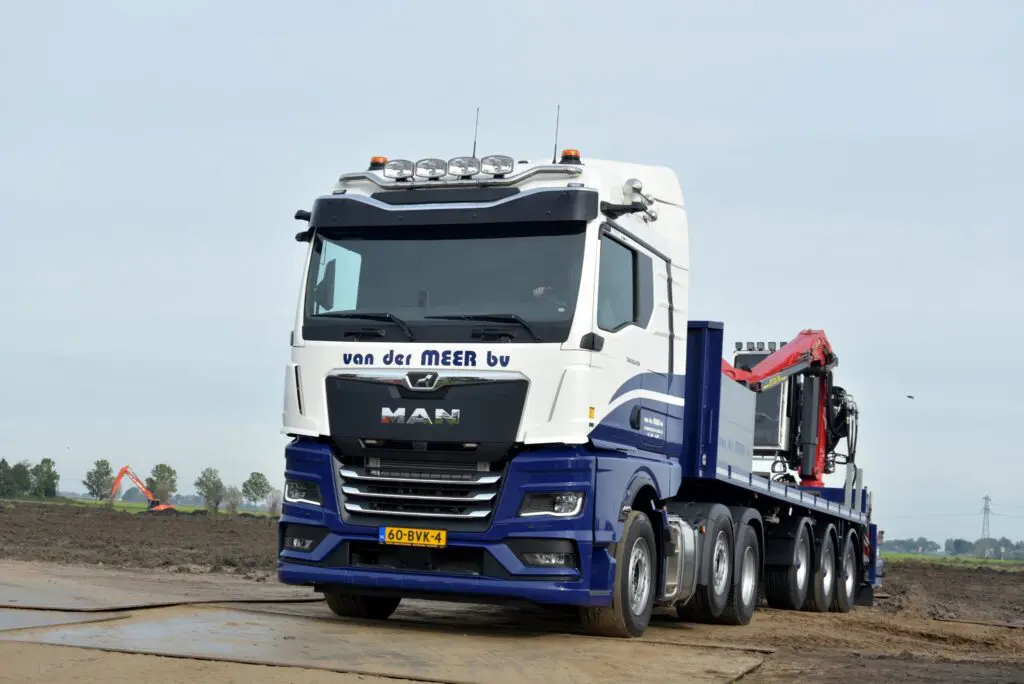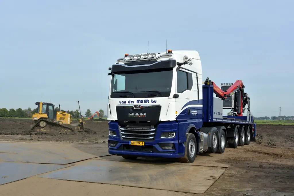 Grondverzet- en Aannemingsbedrijf Van der Meer uit Scharnegoutum heeft een nieuwe MAN TGX 26.470 6×2 trekker in gebruik genomen. De nieuwe MAN wordt ingezet voor het transport van rijplaten en is volledig op afstand te bedienen vanaf de kraan.