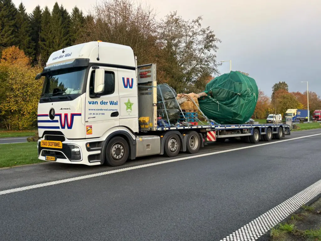 Chauffeur Niels de Pee (10 jaar bij Van der Wal) rijdt al jaren met exceptioneel werk naar Frankrijk. Over zijn eerste rit met de nieuwe truck zegt hij: “Eerlijk is eerlijk, ik dacht eerst: wat een wasmachine… dit ziet er niet uit. Maar toen ik erin zat was ik verkocht. Het comfort is top, hij is heerlijk stil – behalve bij het optrekken, dan komt er zo’n diep, rauw geluid uit. Prachtig! Ik noem ‘m ook wel ‘het beest’.”