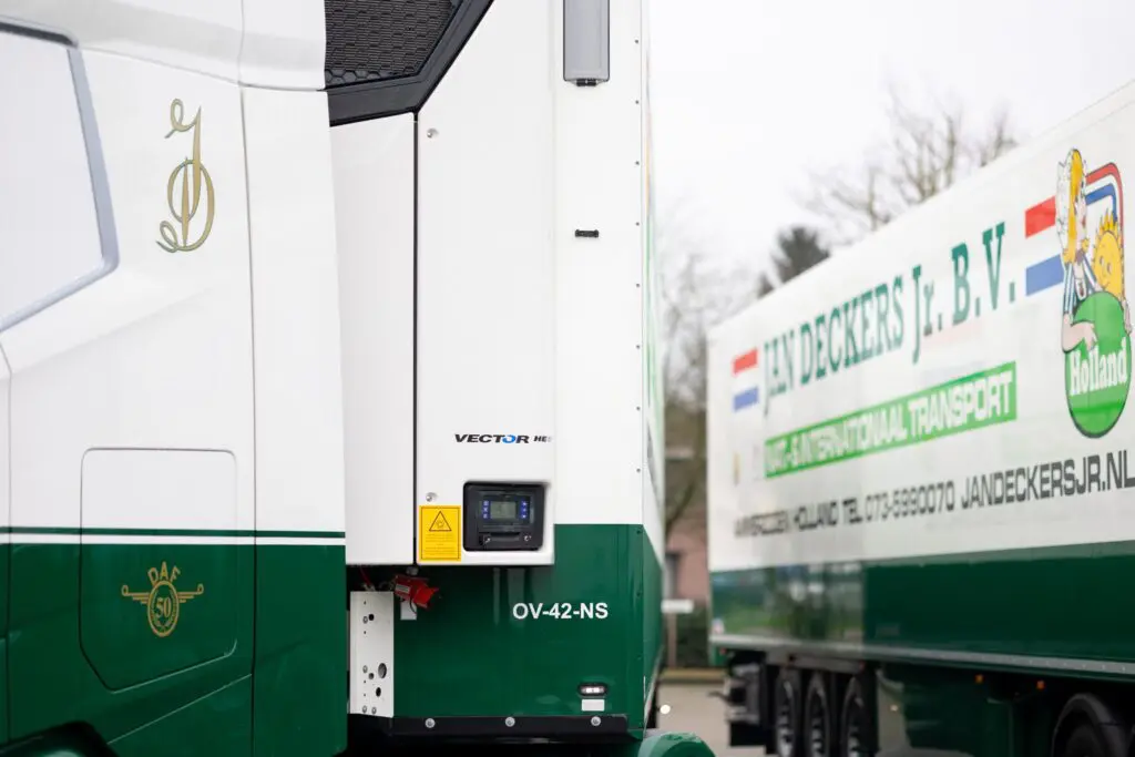 De koel-opleggers zijn voorzien van twee stuks zgn. liftassen, volledige LED-verlichting, palletkist en de nieuwste Carrier HE17 koelmachine. Deze koelmotoren van Carrier zijn stiller, zuiniger en hebben meer capaciteit. “Deze machines nemen wij als eerste in Nederland in gebruik. Zowel trekker als de koelmachine op de oplegger zijn zuiniger qua verbruik hetgeen dus resulteert in nog minder CO2-uitstoot”, aldus Jan Deckers jr. De combinaties werden geleverd door Truckland.