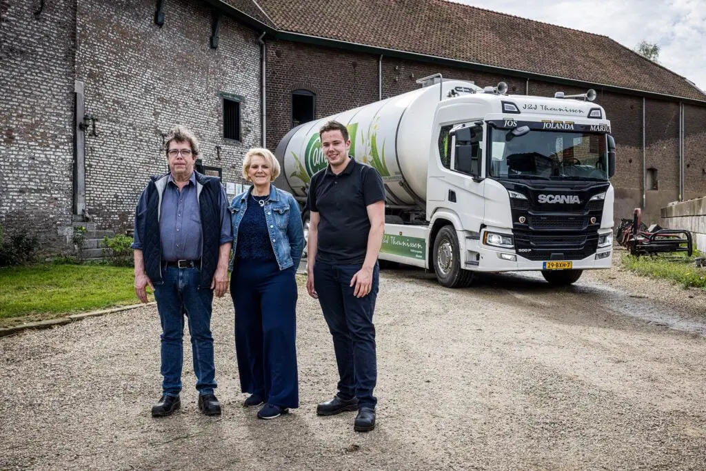 Transport- en Handels- onderneming J. & J. Theunissen rijdt 365 dagen per jaar door de weilanden tussen Vijlen en Ysselsteyn om melk op te halen bij Limburgse veehouderijen en vervolgens af te leveren bij de kaasfabriek van Friesland Campina in Born. Sinds kort wordt daarvoor een gloednieuwe Scania P500 ingezet.