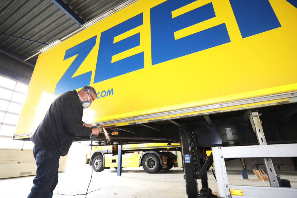 Het beheren van zo’n vloot aan trekkers en opleggers is geen misselijke klus. Zeeman houdt graag de regie over haar activiteiten – denkend aan Jan Zeeman, maar het onderhoud van haar wagenpark hoort daar niet bij. Westen: “Wij besteden in principe al ons onderhoud uit. Vrijwel alle trekkers en opleggers zitten in een onderhoudscontract. Zo zijn we verzekerd van de juiste kennis om ons rijdend materieel goed te kunnen onderhouden. Bovendien zijn we alleen op die manier verzekerd van een Europese dekking mocht er in het buitenland een probleem zijn.” Een prettig idee, zeker als je voertuigen zo’n 100.000 tot 140.000 km per jaar maken, zoals bij Zeeman. Alleen voor klein onderhoud heeft Zeeman een eigen werkplaats in Alphen. “Daar pakken we kleine zaken aan. Schadeherstel, een lamp die kapot is, slijtage aan opleggers. In de werkplaats hebben we twee man werken”, schetst Conen. Voor de banden is er een vast partnerschap met Euromaster. “Drie keer per jaar is er grote inspectie, maar die mannen komen hier elke dag wel op het terrein. Bovendien doen onze chauffeurs altijd zelf hun ronde rond de auto en kunnen het meteen melden als er schade of overmatige slijtage is.”