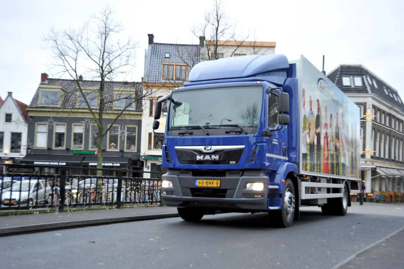 De nieuwe MAN TGM 18.250 is voorzien van een Luchtenberg carrosserie met een tussenschot in lengterichting. Door te werken met verschuifbare wanden kan daardoor de verdeling tussen het diepvries- en koelgedeelte naar behoefte worden aangepast. Daardoor ontstaat een flexibel inzetbare transportoplossing voor de distributie van levensmiddelen. Wagenparkbeheerder Cor de Rooij van Bidfood: “Wij werken al jaren met dit concept in verschillende uitvoeringen. Deze keer hebben we gekozen voor één vaste tussenwand, halverwege de laadruimte in lengterichting. Belangrijk voor ons is de koeling. Doordat onze auto’s veel stops maken in de binnenstad hebben we veel capaciteit nodig om de temperatuur laag te houden.”