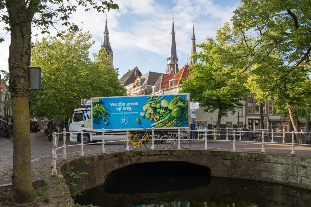 Na de vier grote steden gaat Albert Heijn nu ook Gouda, Leiden en Delft en alle 32 winkels in de milieuzone van Rotterdam elektrisch bevoorraden. Dit wordt vanuit het distributiecentrum in Pijnacker gedaan. Ook de thuisbezorging in deze regio’s wordt elektrisch uitgevoerd. In de tweede helft van 2024 komen hier nog eens 10 steden bij, te weten Amersfoort, Assen, Nijmegen, Maastricht, Zwolle, Deventer, Tilburg, Dordrecht, Apeldoorn en Eindhoven. Daarmee loopt de supermarkt voor op de Zero Emissie wetgeving.