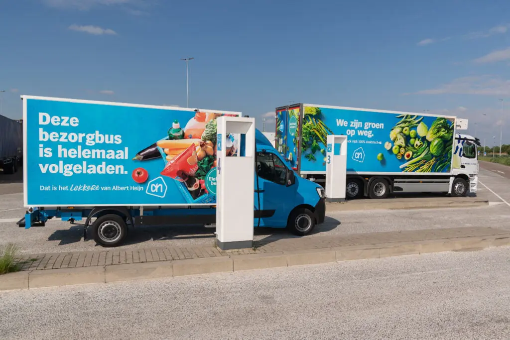 Albert Heijn opende maandag het nieuwe laadplein met 18 snellaadpalen bij het distributiecentrum in Pijnacker. De supermarkt heeft in Nederland in totaal 270 laadpalen voor 74 vrachtwagens én 250 bezorgbussen en beschikt daarmee als retailer over het grootste elektrische wagenpark van Nederland.