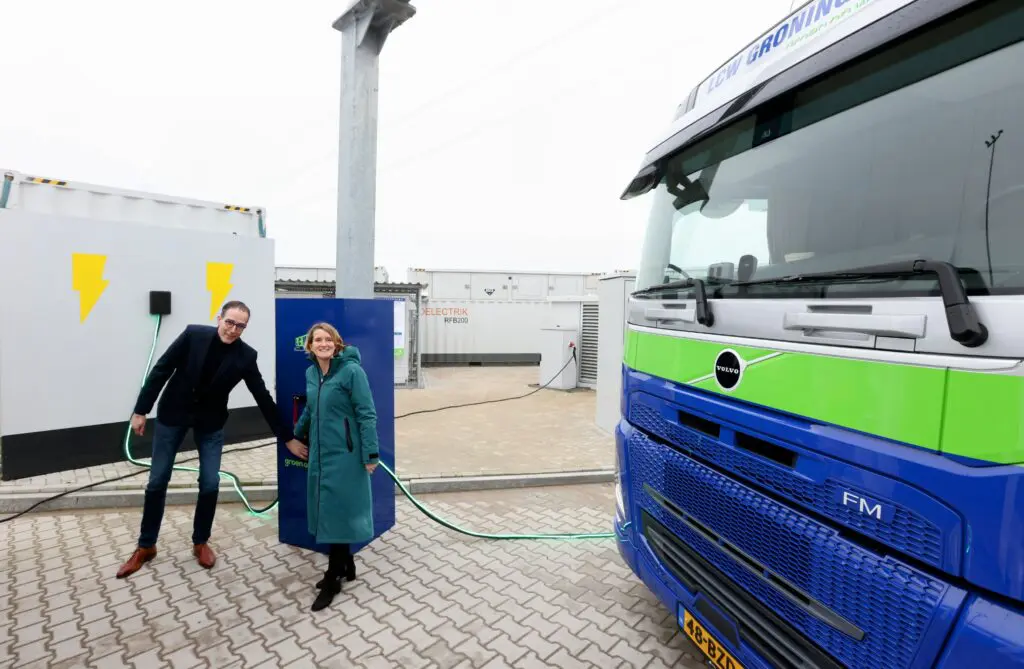 Het gloednieuwe laadplein is ontworpen met het oog op duurzaamheid en efficiëntie. Overdag wordt groene stroom opgewekt via de zonnepanelen en opgeslagen in een duurzame batterij en ‘s avonds gebruikt om de elektrische vrachtwagens op te laden. De laadoplossing is compact, veilig en flexibel, met de mogelijkheid om maar liefst vijf vrachtwagens tegelijk op te laden via een speciale portaalconstructie. Daarnaast is er een krachtige snellader van 500 kW beschikbaar voor het tussentijds opladen.