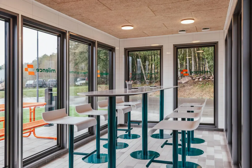 De Milence laadhubs dienen als rust- en laadpunt voor zowel vrachtwagens als chauffeurs. De nieuwe hub in Varberg biedt meer dan alleen krachtige laadmogelijkheden. Het is ook een comfortabele omgeving voor chauffeurs, met een loungeruimte, douches en toiletten aanwezig. Het parkeerterrein is omheind en beveiligd met toegangscontrole, verlicht en uitgerust met camerabewaking en Wi-Fi voor een optimale ervaring.