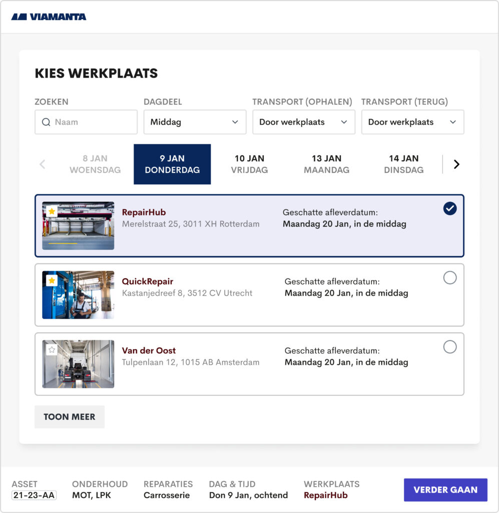 Viamanta is ontworpen om operationele uitdagingen uit de praktijk te verhelpen door een gestructureerd plannings- en communicatieplatform te bieden. Daarmee vermindert miscommunicatie en verbetert de samenwerking tussen planners, vlootbeheerders en werkplaatsmanagers.