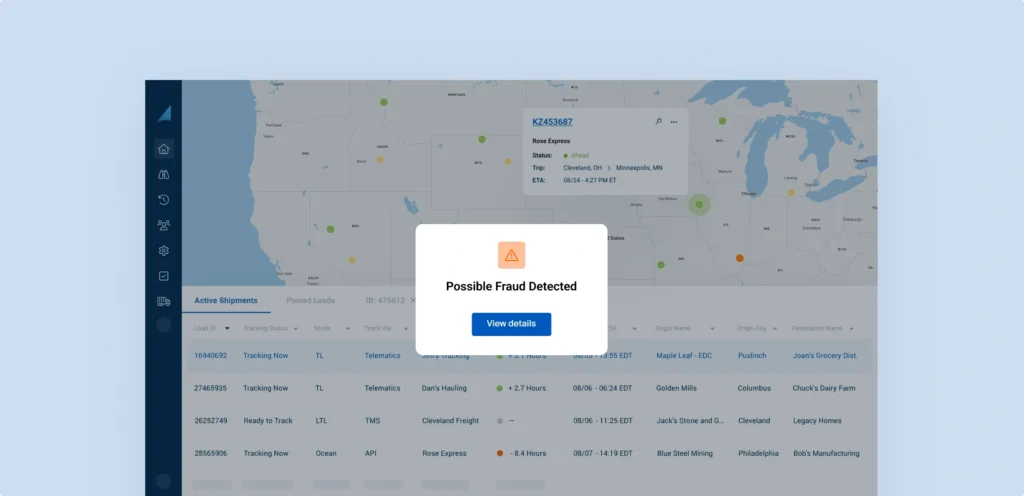 - Tool om vervoerders en chauffeurs op te zoeken: naast realtime waarschuwingen hebben gebruikers snel toegang tot informatie over prestaties en risicoprofielen aan de hand van Department of Transportation-nummers of telefoonnummers van chauffeurs. Denk aan het aantal ladingen dat actief wordt gevolgd, hoeveelheden en eerdere fraude-indicatoren. Hierdoor kunnen bedrijven betere beslissingen nemen wanneer ze ladingen plannen en vervoerders selecteren.