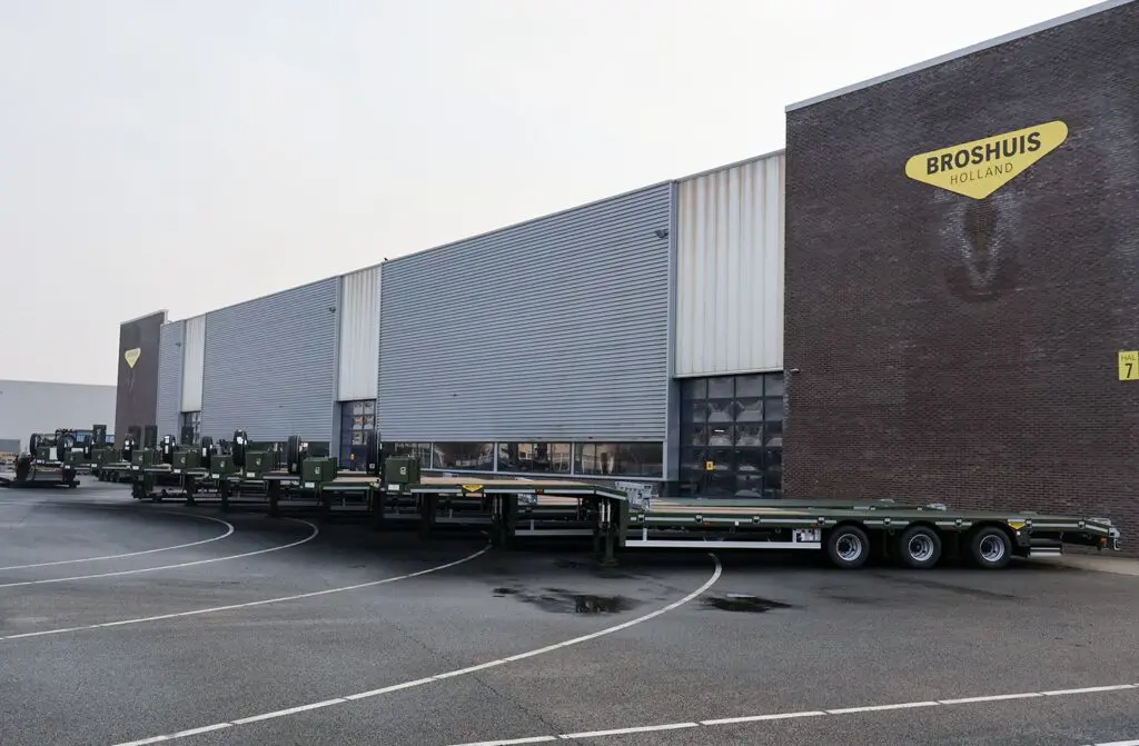 Vorige week donderdag zijn de eerste opleggers voor de witte vloot van Defensie afgeleverd. Een bijzonder moment, want 31 jaar geleden leverde Broshuis de huidige 280kN opleggers aan de Nederlandse Defensie. Nu, na 31 jaar trouwe dienst, wordt een deel vervangen door een nieuwe generatie opleggers en en deel van de oude 280kN opleggers blijven nog in gebruik.