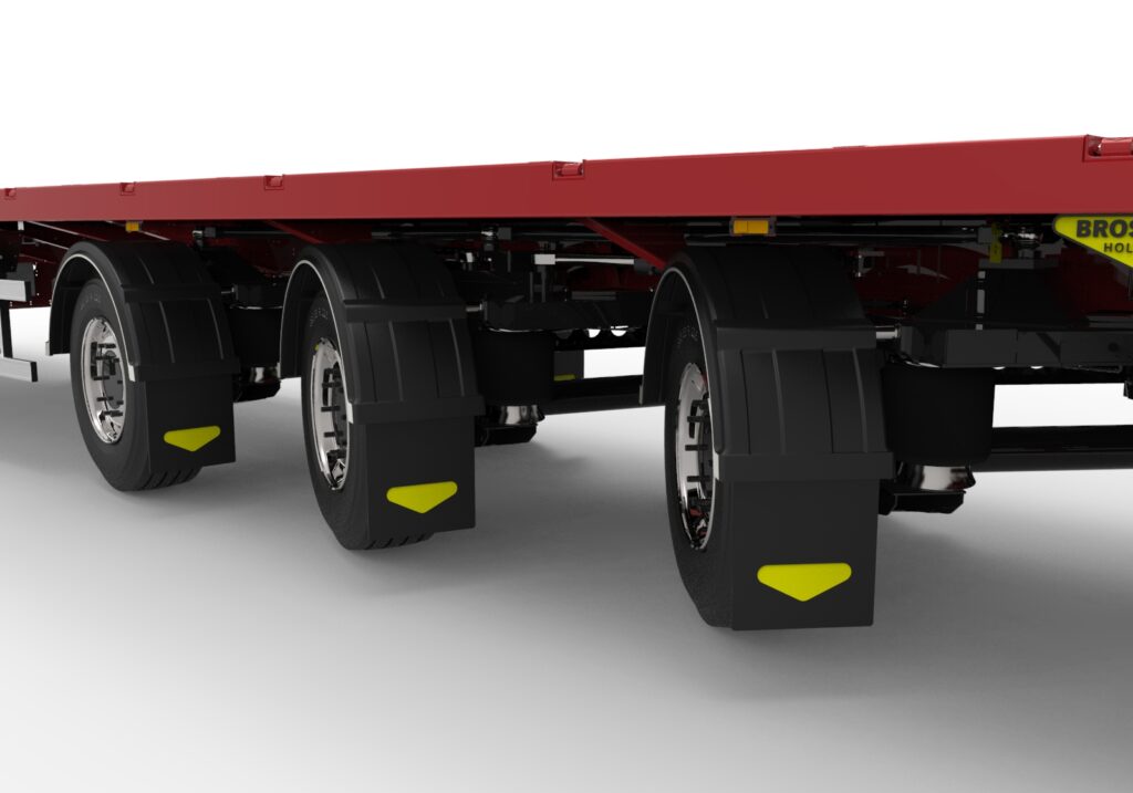 8.400 kg weegt de vlakke oplegger om precies te zijn. Het grootste doel om deze oplegger te ontwikkelen is het kunnen vervoeren van zwaardere ladingen zonder ontheffing. Broshuis hierbij uitgegaan van het maximale combinatiegewicht in Duitsland dat staat op 40 ton.