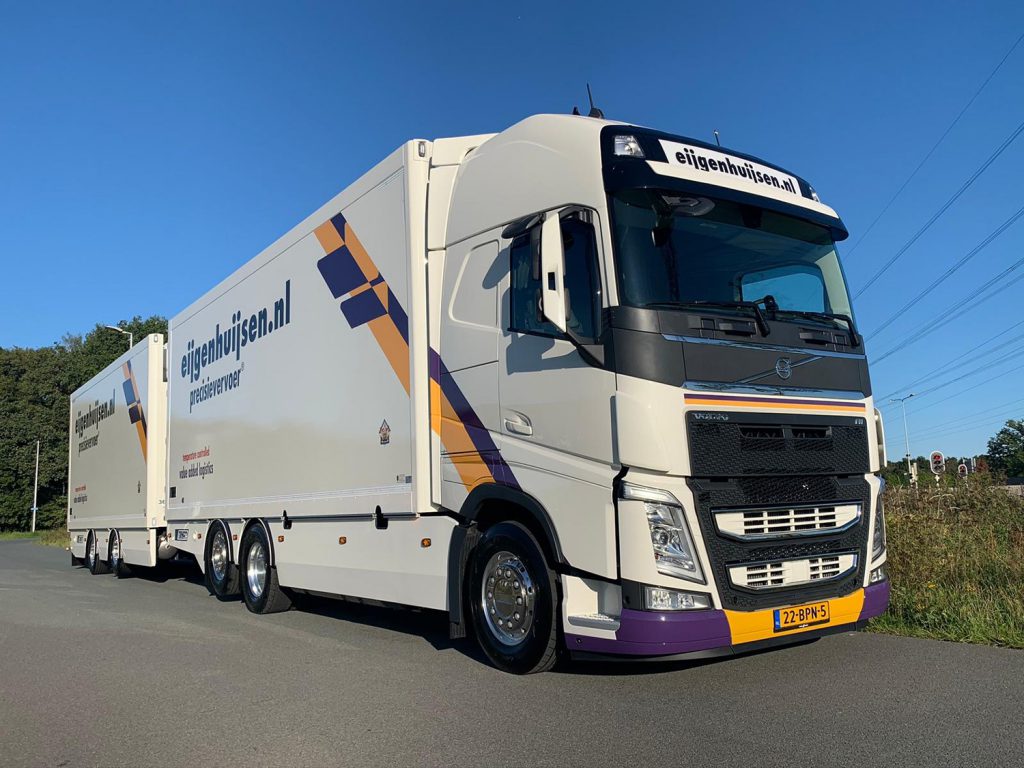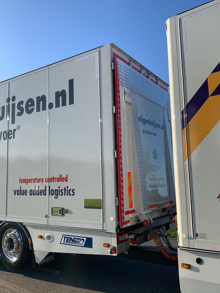 De variant die Carrosserie Elenbaas aan Eijgenhuijsen Precisievervoer leverde valt in de categorie speciaal. De Ekeri opbouw heeft een inwendige hoogte van 2700mm, de aanhangwagen is zelfs 2870mm hoog. Door de kennis en knowhow van Ekeri is er bijna geen verlies tussen de inwendige en insteek-hoogte. Beide laadbakken zijn aan het kopschot voorzien van een nis waarin de koelmachine is gemonteerd.