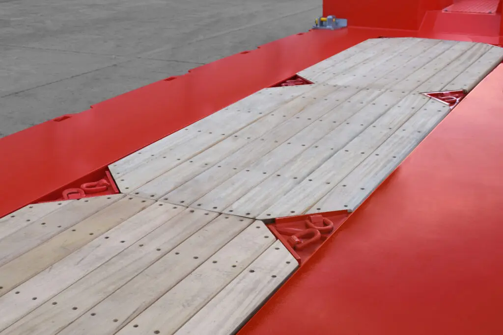 Op het gebied van ladingzekering beschikt de dieplader over een groot aantal sjorogen met hoge capaciteit. Daarnaast moet metallisatiebescherming, getest tot 3.800 uur in zoutneveltesten, zorgen voor langdurige corrosiebestendigheid en waardebehoud.