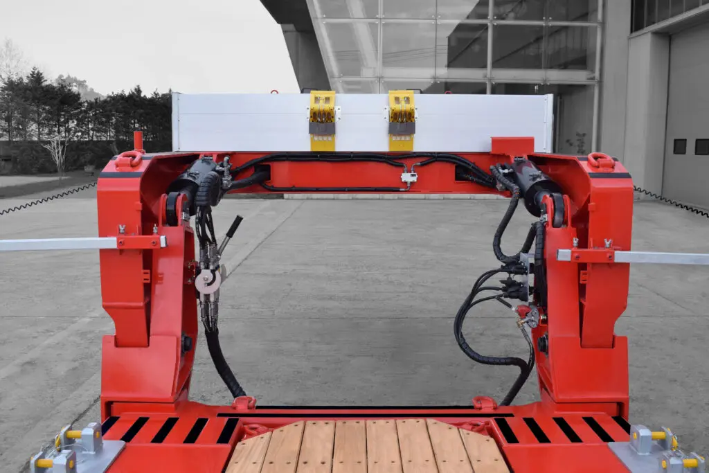 Met een laadvloerhoogte van slechts 350 mm behoort de K.SLL P tot de laagste in zijn segment. De afkoppelbare zwanenhals maakt frontlading mogelijk en kan via snelkoppelingen in minder dan 50 seconden worden losgekoppeld.