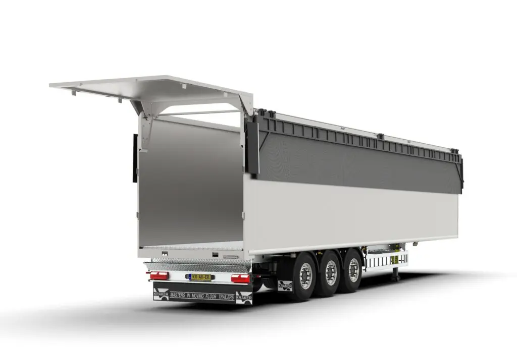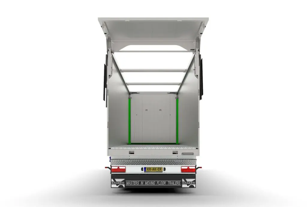 De eerste K-Force Waste is door de Franse dealer Delta Trailers verkocht aan een Franse klant. Deze trailer is uitgerust met een tweedelig milieudak en een hydraulische achterklep. Beide zaken maken het werken met de K-Force Waste makkelijk én veilig: op het bordes klimmen is niet meer nodig. Met één druk op de knop opent en sluit het dak zich volledig automatisch. Hetzelfde geldt voor de achterklep. Op klantvraag kan de K-Force Waste ook nog met een beperkt aantal opties worden geleverd.