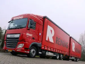 Onlangs heeft Autobedrijven ESA, DAF-dealer in Groningen en Friesland, de eerste New DAF XF 480 FAR Space Cab bij Reining Transport mogen afleveren. Dit jaar zullen er 30 van deze volumecombinaties worden afgeleverd. De nieuw te leveren trucks worden samen afgeleverd met nieuwe WEB 2-assige middenas aanhangwagens. Voor de opbouw van de truck en aanhangwagen heeft Reining gekozen voor een schuifzeilcarrosserie van Carrosseriebouw Compaan uit Assen.