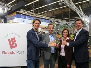 Afgelopen dinsdag ondertekenden groothandel Deli XL en het ecologische stadsdistributiebedrijf Bubble Post een samenwerkingscontract. Daarmee onderschreven de bedrijven dat zij zich de komende jaren samen zullen inzetten voor verdere verduurzaming van distributie in de grote binnensteden. De ondertekening vond plaats op de Horecava in Amsterdam.