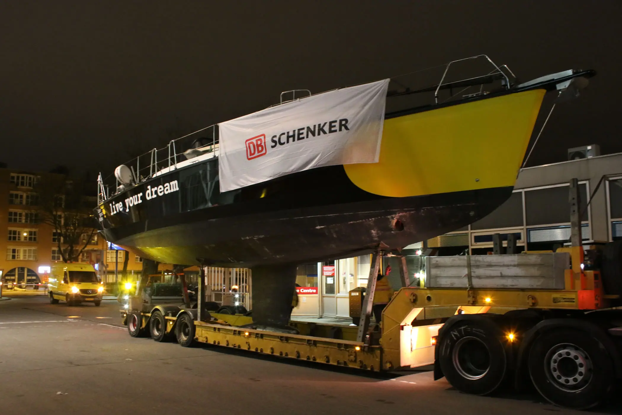 In de nacht van 5 op 6 maart heeft DB Schenker Logistics het transport van vier vaartuigen naar de Amsterdam RAI georganiseerd, waaronder het veertien meter lange, aangepaste zeiljacht ‘Live Your Dream’ van de stichting ‘Leef Je Droom’. Met speciaal materieel werden de boten donderdagmiddag uit het water getild en op diepladers geplaatst. Het verdere transport van de Amstel naar de RAI gebeurde in de nachtelijke uren.