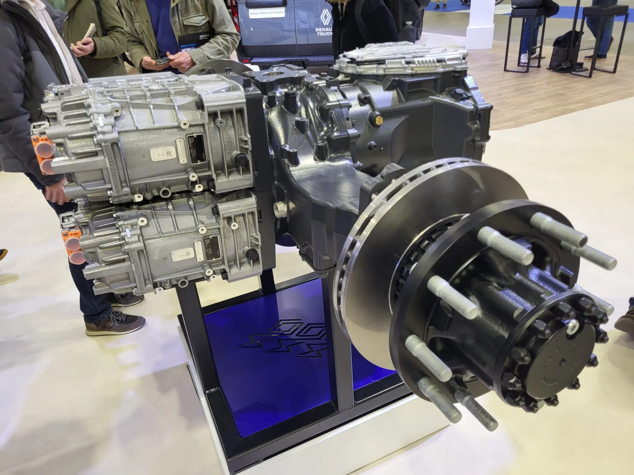Voor de stedelijke distributie toont Renault Trucks de E-Tech D14, een 14-tonner met compact chassis, korte draaicirkel en volledige luchtvering. Vier LFP-batterijen (176 kWh) zorgen voor een actieradius tot 220 kilometer – voldoende voor een volledige stadsdienst. Laden kan via 43 kW AC of 150 kW DC. De D14 wordt geproduceerd in Blainville-sur-Orne. Op de stand van Renault Trucks (en ook op de foto) staat een D12, omdat die in Frankrijk gevoerd zal worden.