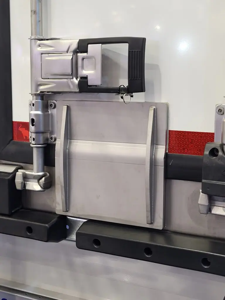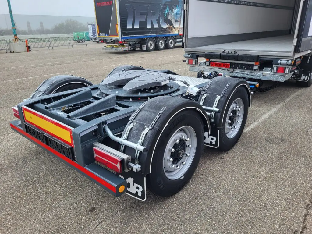 En als laatste weer zo’n typisch Frans opleggermerk waar je normaal nooit wat van hoort: Lamberet. Het merk had als altijd een grote stand met een paar aardige nieuwtjes, met natuurlijk die Dolphin. Opvallend was de nieuwe Kia PV5 bestelauto, uitgevoerd met de nieuwe Frigoline HPI lijn. Deze microcellulaire polyurethaanschuimisolatie is vrij van PFAS en HFO en reduceert warmteverlies tot 33 procent. Daarmee blijft de actieradius van elektrische voertuigen beter behouden en dalen de energiekosten. Frigoline HPI wordt vanaf december 2025 standaard ingezet op alle Lamberet-opbouwen. Interessant bij Lamberet is ook de de SR2 X-City 27P oplegger. Deze heeft een CE-gecertificeerd automatisch Distri+-gordijn, een laadvolume voor 27 pallets en een kleine draaicirkel dankzij een innovatief Green-Steering stuuraskabelsysteem. We zagen ook de de Frigoline HD Beeflift bakwagen, uitgerust met rails in het dak. Het vermindert de belasting bij het transport van vlees dankzij een geassisteerde portaalconstructie. En letterlijk tot slot het nieuwe Safety Lock RFID, dat moet voorkomen dat ongewenste bezoekers toetreden tot de oplegger.