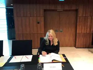 Demissionair minister Melanie Schultz van Haegen tijdens donderdag de Transportraad in Luxemburg het Protocol tot wijziging van het EUCARIS-Verdrag ondertekend. Hiermee wordt het opsporen van fraude en criminaliteit met rijbewijzen en voertuigen weer iets eenvoudiger.