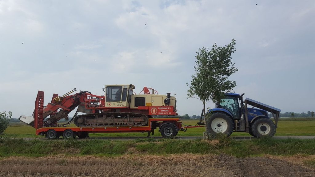 Heerschap Drainage uit Nieuw-Beijerland nam recentelijk een extra zware Floor aanhangwagen in gebruik, voor het vervoer van de zware machines die de onderneming inzet. Directeur David Heerschap: “Onze machinepark is zeer divers, waarbij onze zwaarste drainagemachine 28 ton weegt. Met het oog op de landbouwwerkzaamheden zetten we een relatief lichte tractor in. Daarbij kiezen we bewust voor een robuuste aanhangwagen met een enkele, maar zware vooras.”